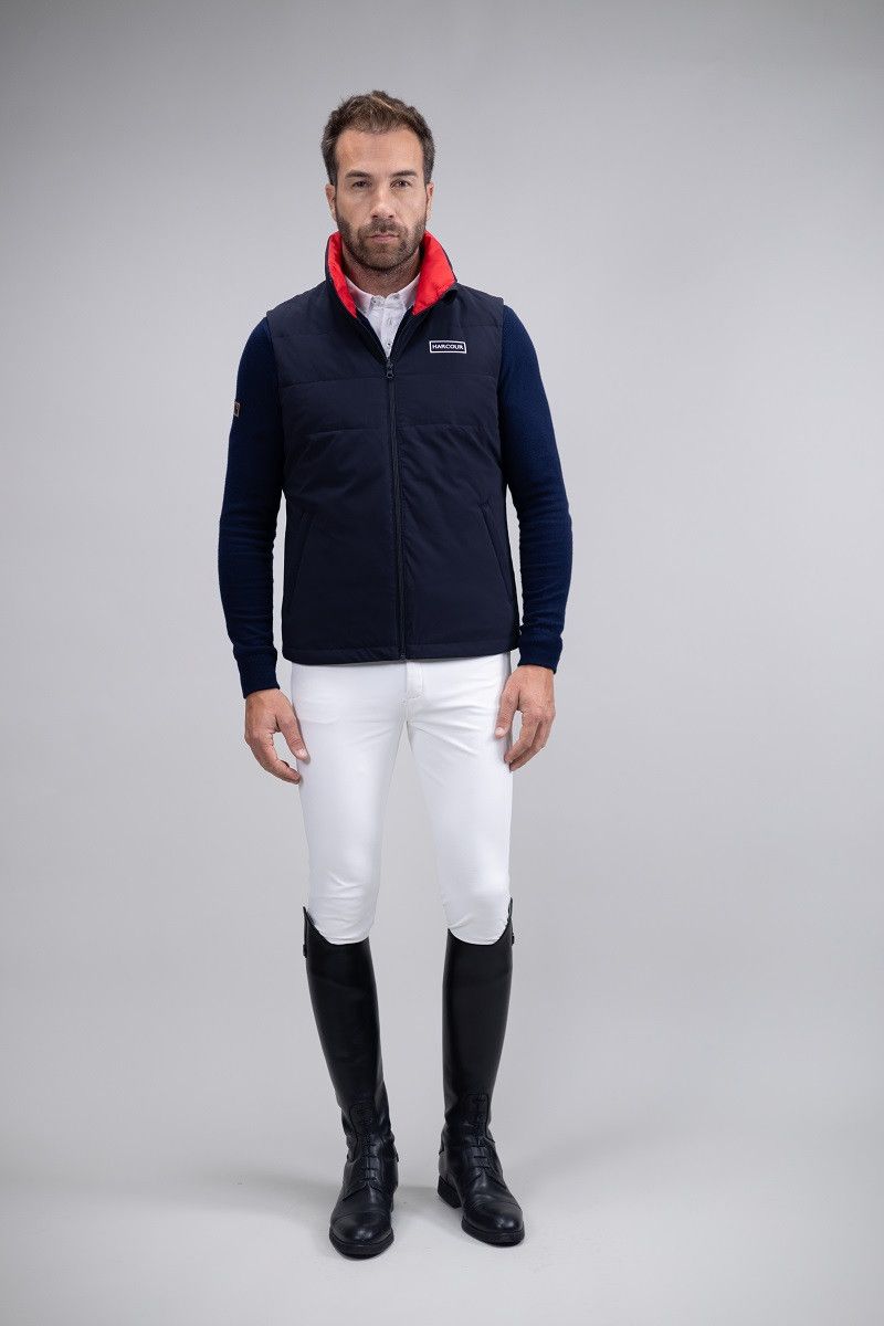 Gilet sans manches homme, collection France, double fermeture, poches latérales, logo Harcour poitrine et logo France dos. Taille normale.