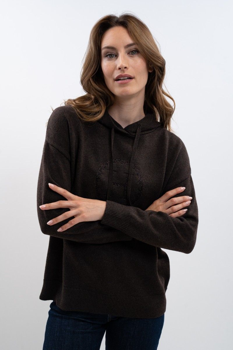 Sweat à capuche Harcour confortable et stylé, logo brillant sur le devant, coupe ample. Effet oversize ou ajusté selon votre taille.