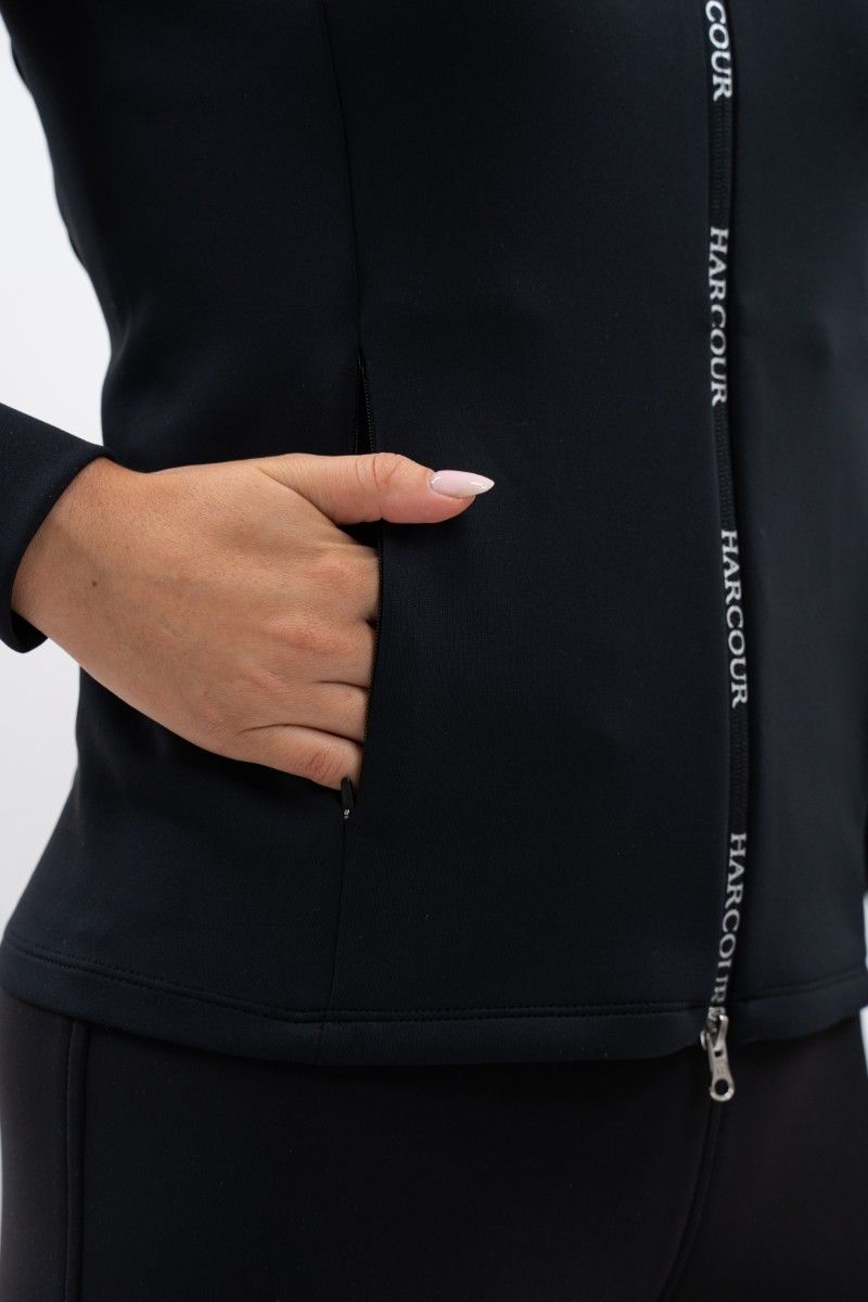 Sweat à capuche en matière stretch confortable, coupe ajustée, avec zip imperméable logo Harcour et deux poches zippées. Taille normale.