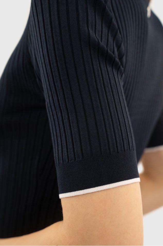 • Ligne blanche contrastée au col et en bas des manches pour une touche raffinée