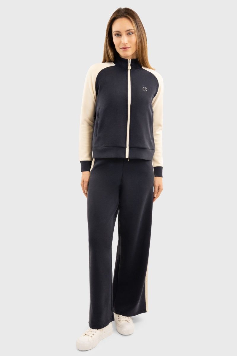 Sweat zippé femme Harcour : style moderne, matière douce, col montant, manches contrastées et détails soignés pour confort et élégance au quotidien.