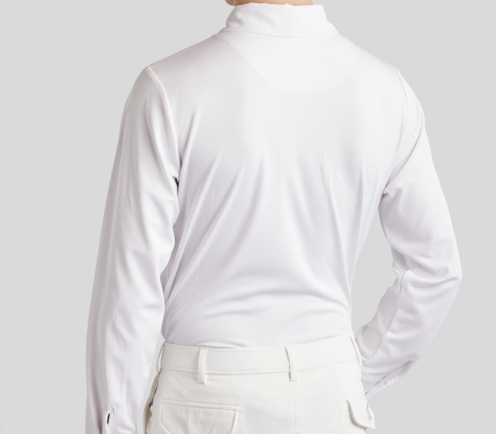 Chemise de compétition homme Montar MoWill à manches longues, col blanc classique et tissu respirant pour un confort et une élégance optimale en concours.