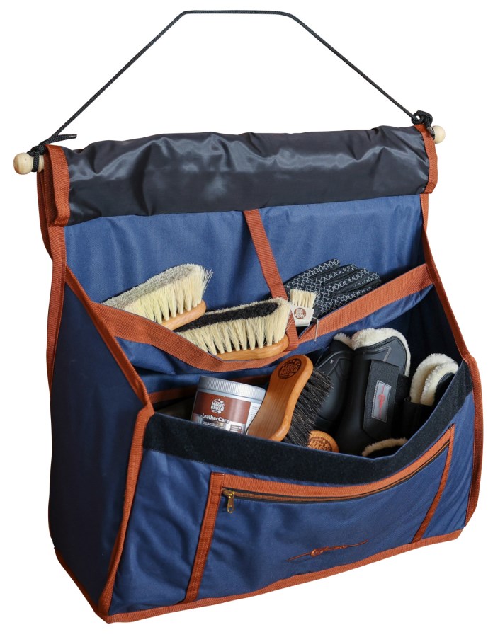 Sac pour boxe solide et pratique destiné au rangement propre et ordonné d’ustensiles de pansage, des guêtres, licols, etc. dans l’écurie ou pendant le concours.