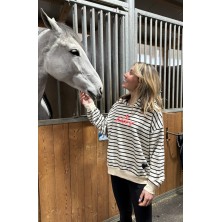 Avec ses rayures tendance et sa taille unique, ce sweat s’adapte parfaitement à tous les cavalières pour un look à la fois sportif et stylé. Idéal pour les journées à l’écurie ou pour un usage quotidien.