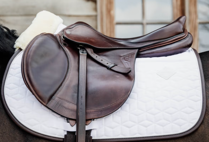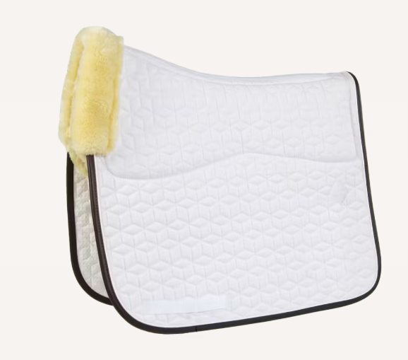 • Doublure en peau de mouton artificielle : placée à l’intérieur du tapis et sur le garrot, elle absorbe les chocs et limite les frottements, offrant un contact proche et précis avec le cheval, sans avoir besoin d’un amortisseur supplémentaire.