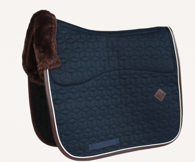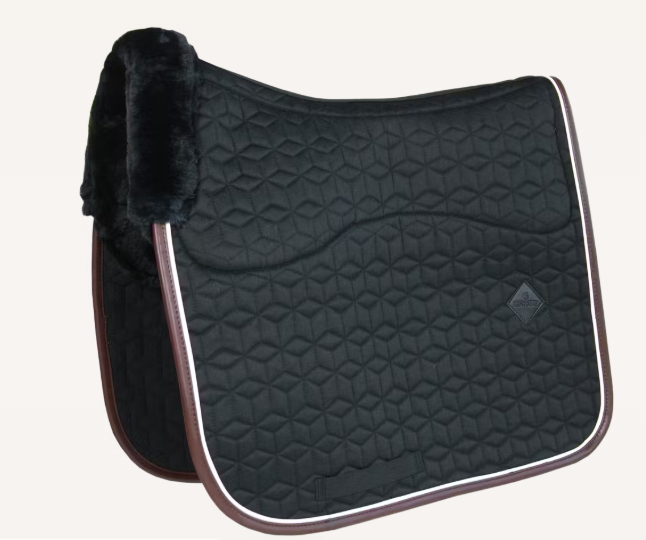 Tapis de selle Skin Friendly Dressage Kentucky, doux et confortable pour chevaux sensibles. Absorbe les chocs, limite les frottements, matelassage élégant.